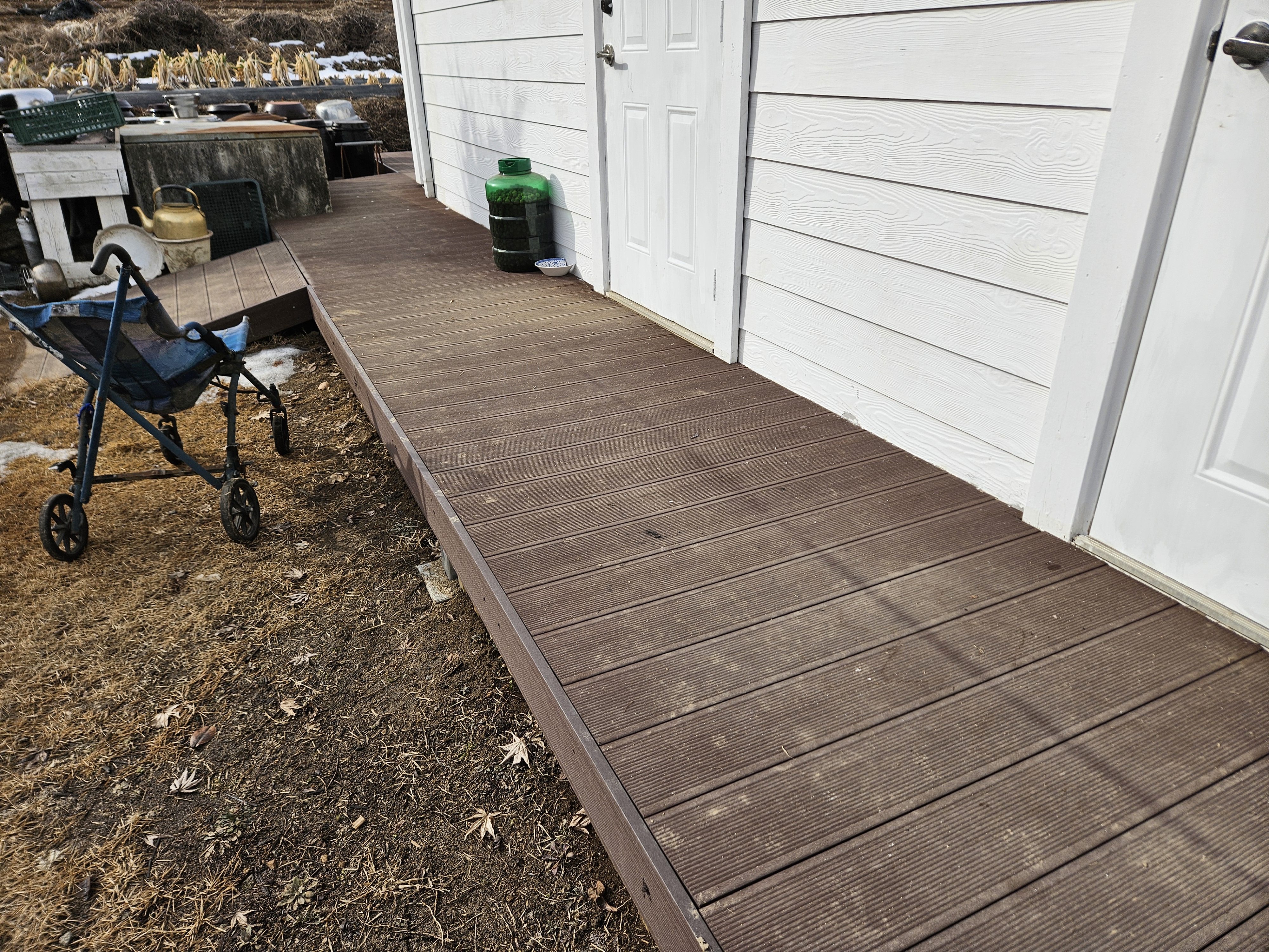 인조데크로 전원주택 데크만들기를 한 현장이예요.